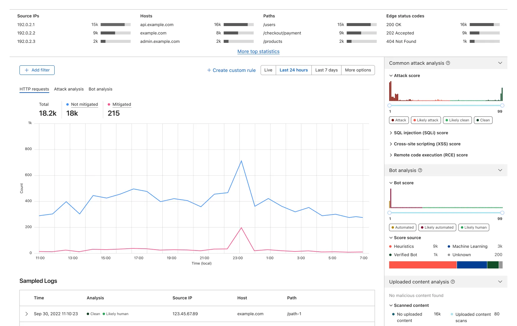 Before I joined the initiative to solve this challenge, a product manager had been exploring a new approach to enable the much valued visibility. Cloudflare does log the metadata of (sampled) all requests, and Ray ID can be used to link raw requests log and Firewall Events log, meaning users can potentially review how much portion of their traffic were mitigated. But to support users make informed decisions faster, we still need to enrich the raw requests log with signature matching insights which in itself is technically complex, but is well under way. This new security framework is summarised as detection then mitigation.