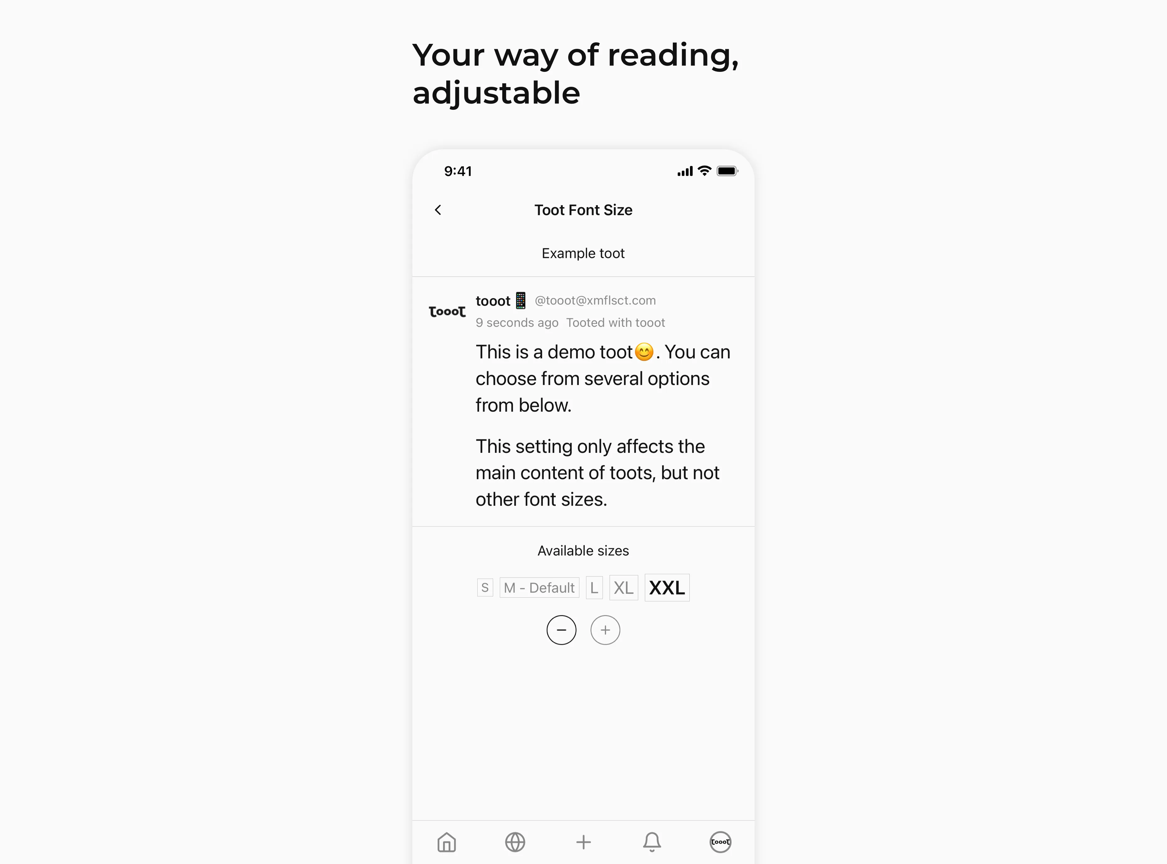 My previous experience of cleaning up H&M’s app sets a clear starting point to define tooot app’s structure. The core consits of 3 needs: 1) what I can read; 2) what I can write; 3) what I have done. Bottom tab navigation is by far the best navigation approach when above purposes can be defined clearly.